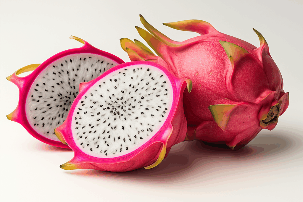 - Pitaya branca: polpa branca com casca rosa vibrante.