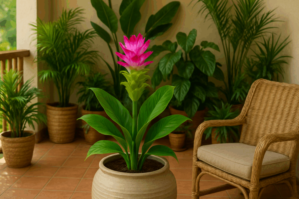 Ela tem uma presença marcante, mas não domina o espaço pelo contrário, harmoniza super bem com outras plantas tropicais. O cultivo da flor de Curcuma no jardim se encaixa muito bem em diversos estilos.