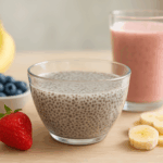 A chia forma um gel natural ao entrar em contato com líquidos, o que ajuda a prolongar a sensação de satisfação. Isso pode contribuir para quem busca comer com mais consciência e evitar excessos.