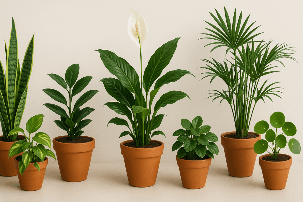 - Quartos: peperômias, lírios-da-paz ou zamioculcas
